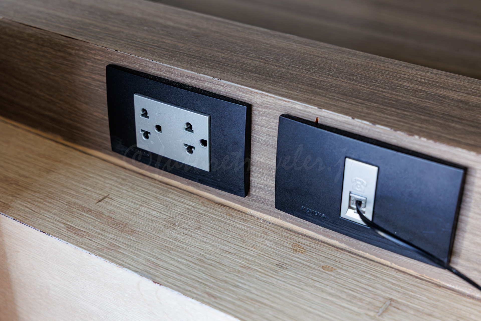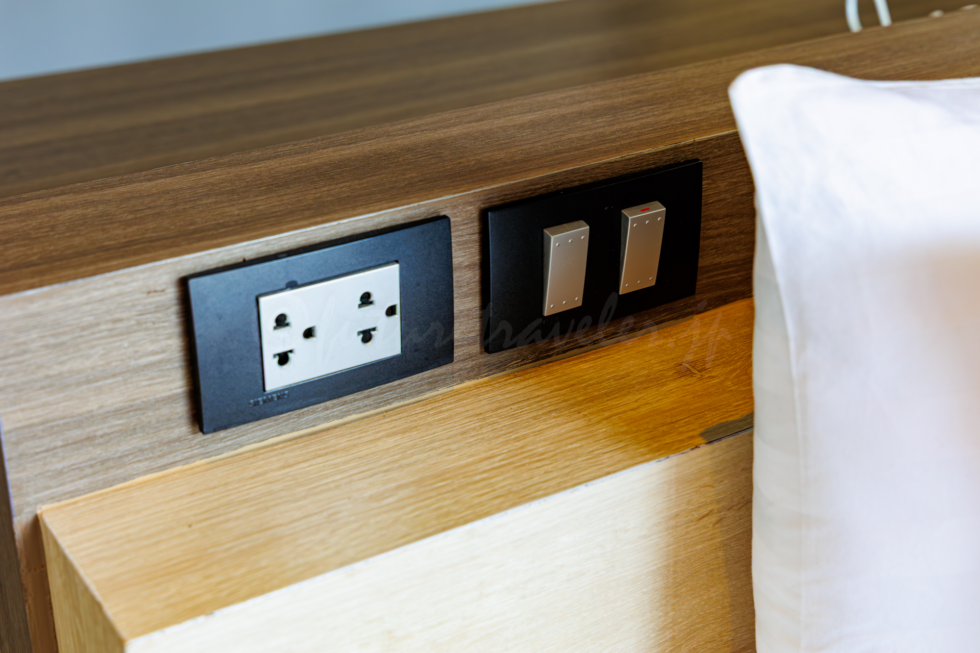 ベッドボードにはコンセントもあります。