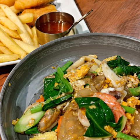 こちらで夕食をいただきました。写真はパッシユのシーフードとポテトとナゲットです。一人なのでパッシユだけだと少ないと思ってナゲットまで頼んじゃいました。このようにタイ料理だけではなく西洋料理も多種用意されています。